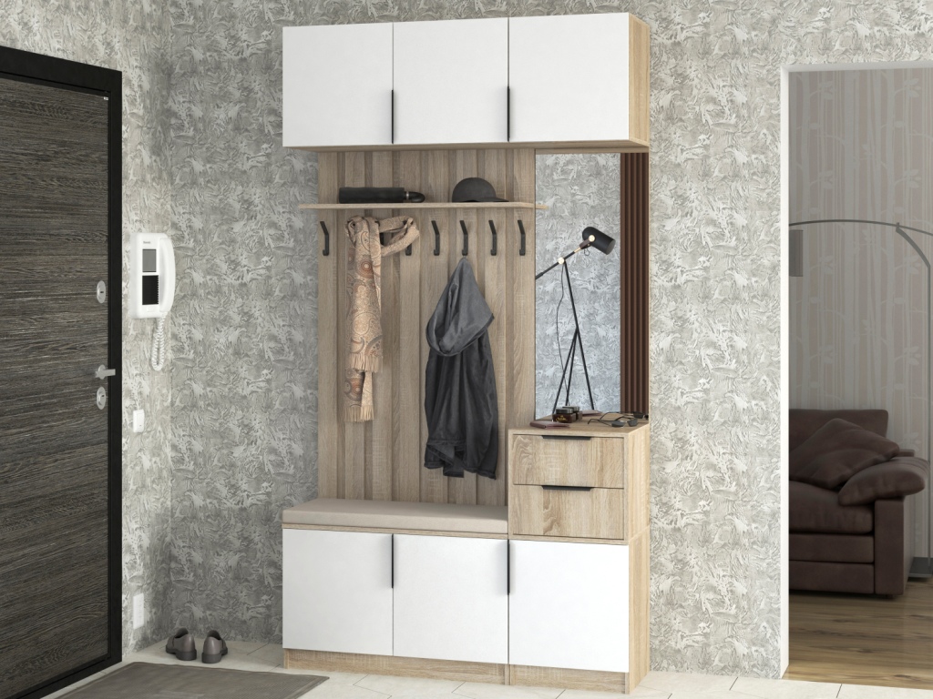 Во вкладке "Выбрать модули" Вы можете подобрать различные по комплектации шкафы, вешалки, угловой элемент. Модульная система поможет подобрать вам необходимые модули, с учетом размеров помещения, планировки.
