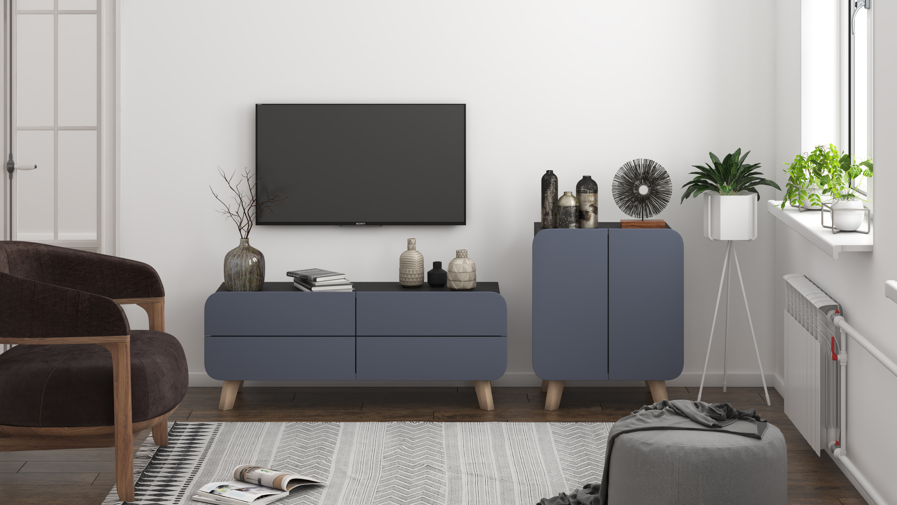 Модульная стенка для гостиной "Модерн Сканди-5"