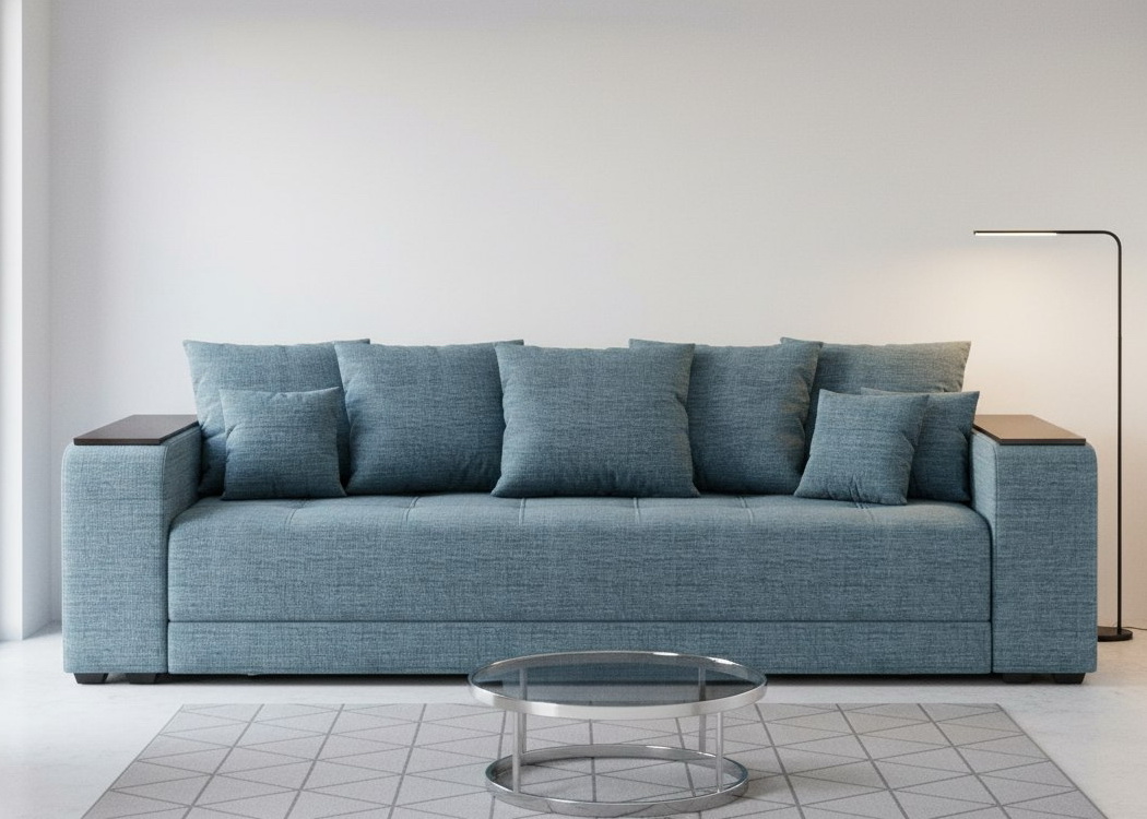 Прямой диван "Дубай" еврокнижка, рогожка дрим блю