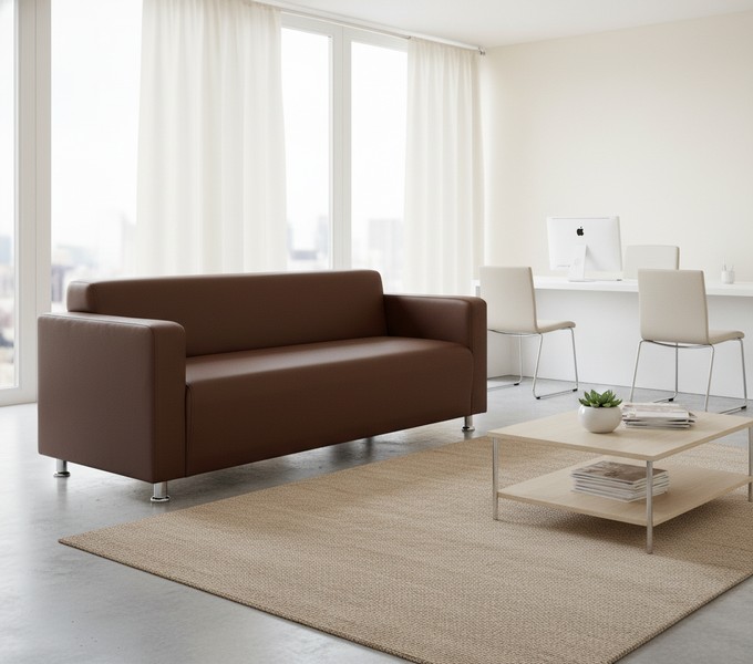 Прямой диван "Томи" кожа коричневая