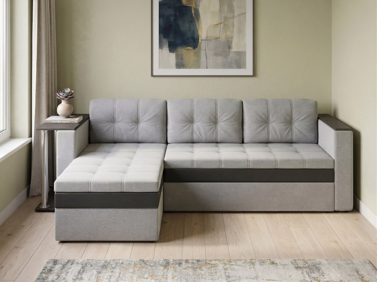 Угловой диван "Атланта со столиком" рогожка дрим лайт грей
